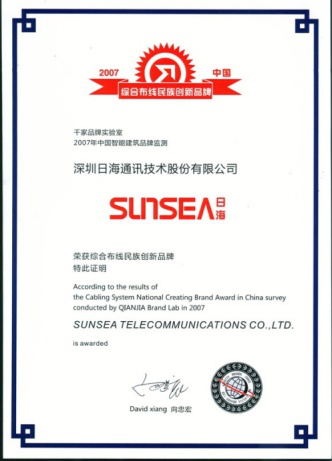 2007年11月29日~30日,Ebpay官网智能综合布线受邀前往上海光大会展中心酒店,参加由千家网筹办的“2007年第八届中国国际建筑智能化峰会暨颁奖典礼”,取得了“布线民族创新品牌”特别奖项。